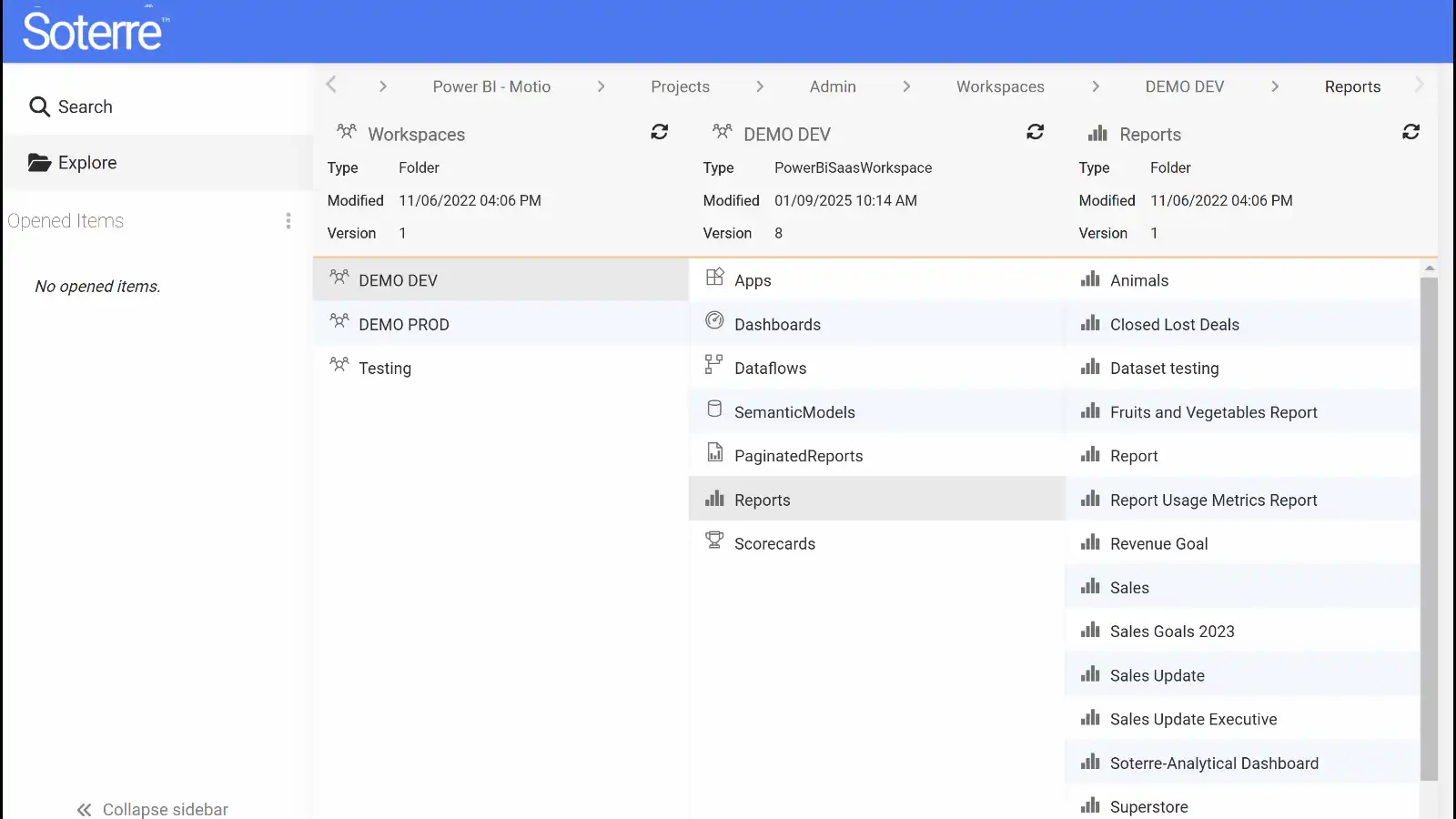 Explore the core features designed to streamline development, strengthen governance, and enhance visibility across your analytics environment, empowering teams to manage assets, deployments, and performance with precision and efficiency.